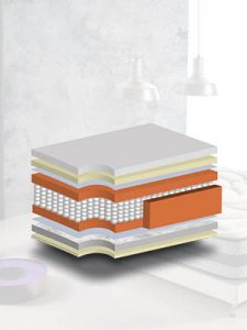 - Núcleo de Muelles Ensacados: En total 702 muelles independientes (para la medida de 200 x 200 cm) que otorgan una adaptabilidad personalizada a cada zona del colchón.