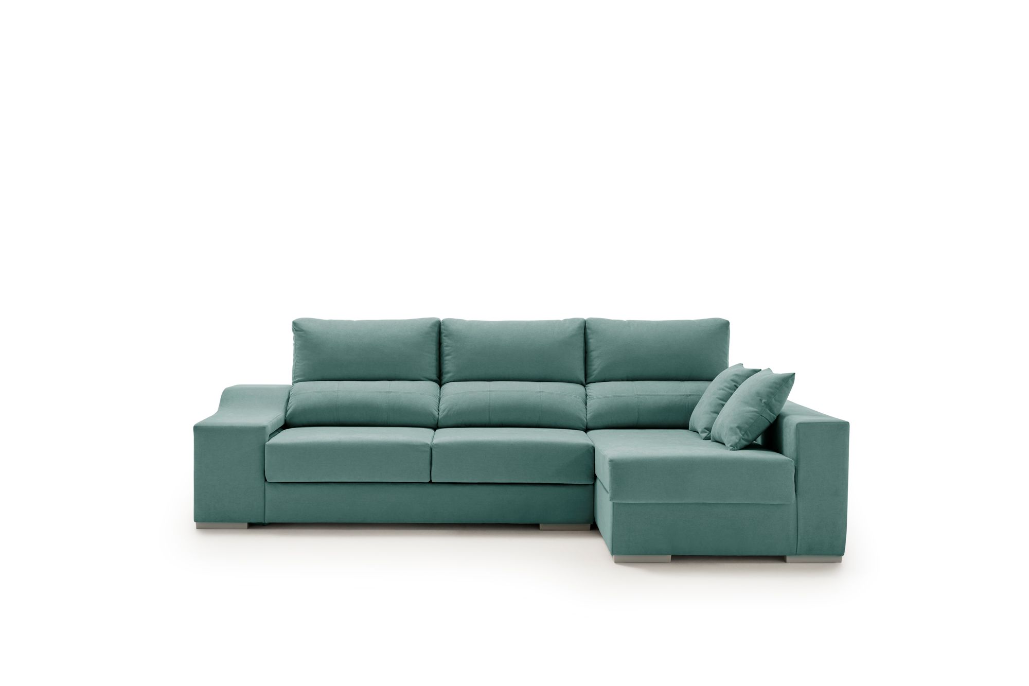 Colores disponibles: Beige, Gris, Marengo, Marrón y Turquesa (disponible con chaise longue a derecha o izquierda, mirando de frente al sofá).